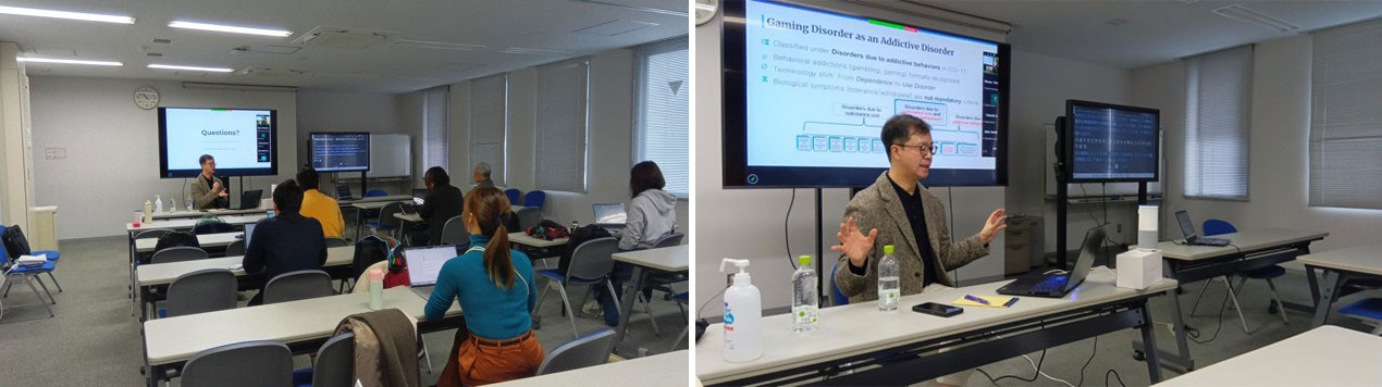 2026年2月16日午前、京都大学大学院医学研究科社会健康医学系専攻(KUSPH)にて、「韓国におけるインターネット・ゲーム依存症への対応:公衆衛生と臨床的視点」と題した国際レクチャーが開催されました。現地とZoomを併用したハイブリッド形式で実施され、約30名の学生および教員が参加しました。本講演では、韓国・カトリック大学校医学部精神医学講座のHae-Kook Lee教授をお招きし、思春期のデジタルメディア依存を中心に、公衆衛生学的視点からの包括的な理解と対応戦略についてご講演いただきました。